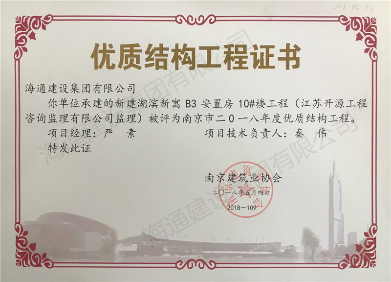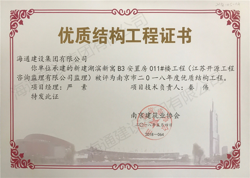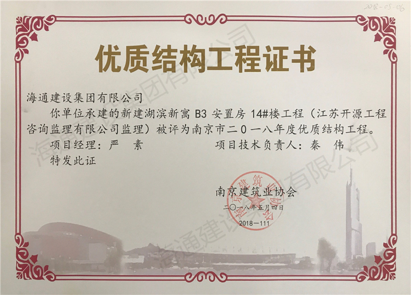 南京市優質結構2018-新建湖濱新寓B3安置房14#樓工程