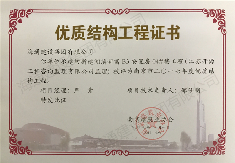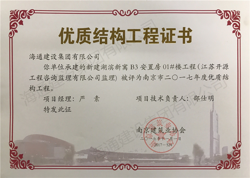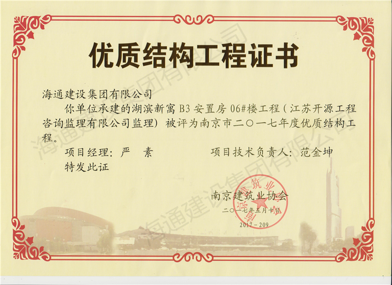 南京市優質結構2017湖濱新寓B3安置房06#樓工程