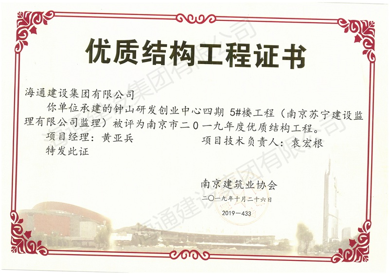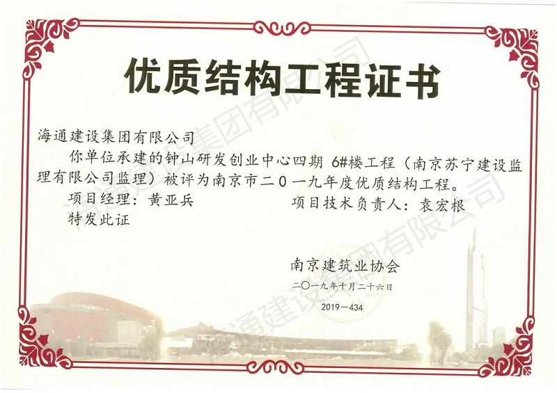 南京市優質結構2019鐘山研發創業中心四期6#樓工程