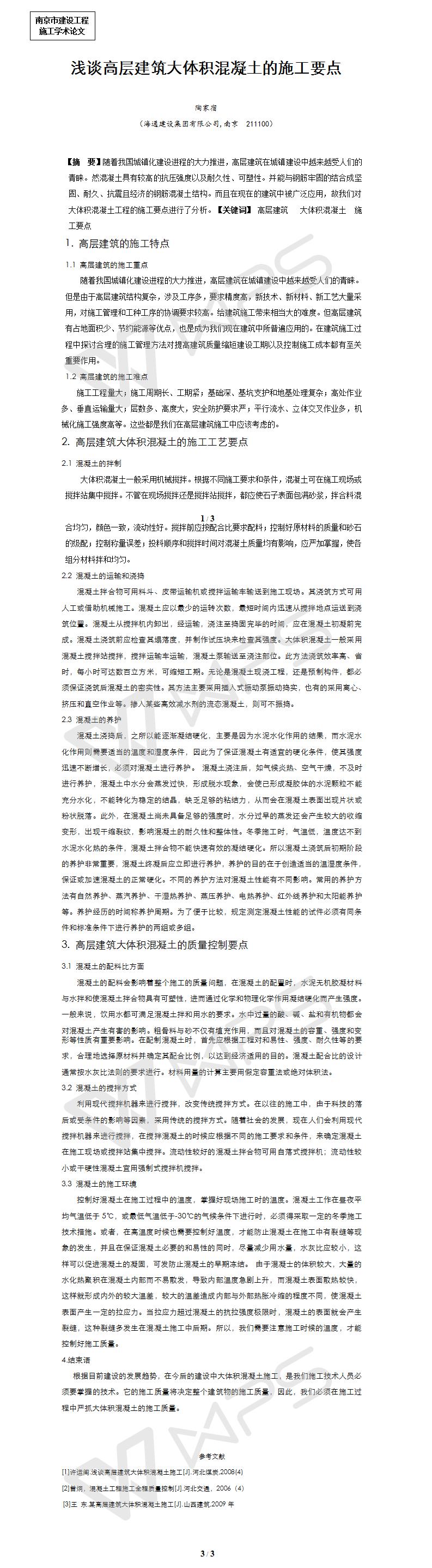 淺談高層建筑大體積混凝土的施工要點