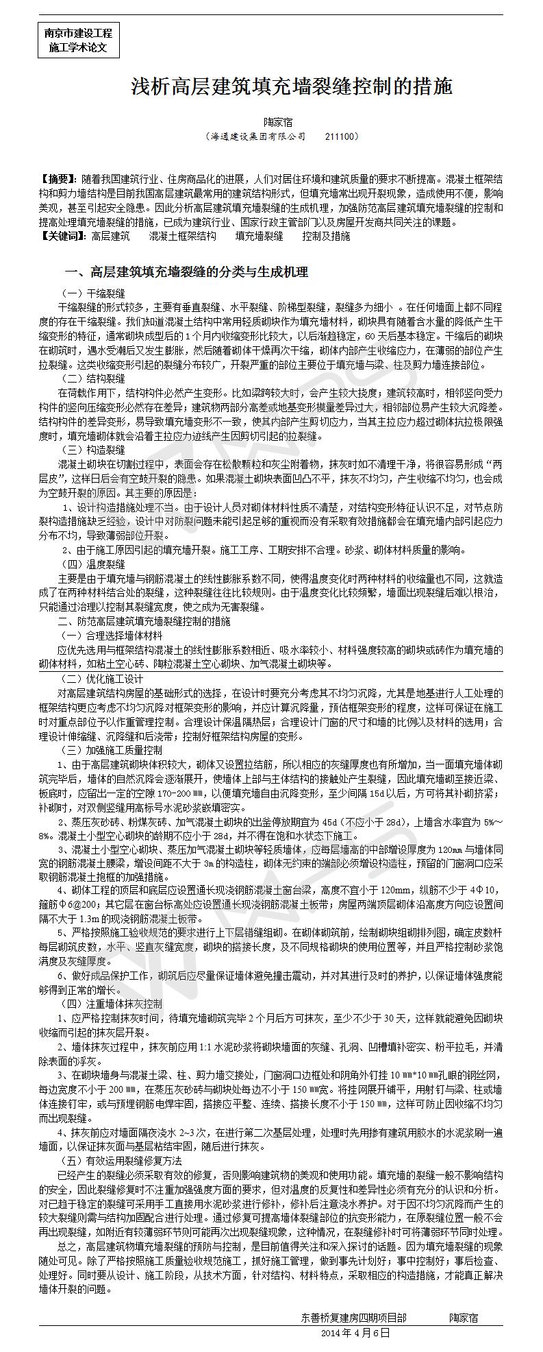 淺析高層建筑填充墻裂縫控制的措施