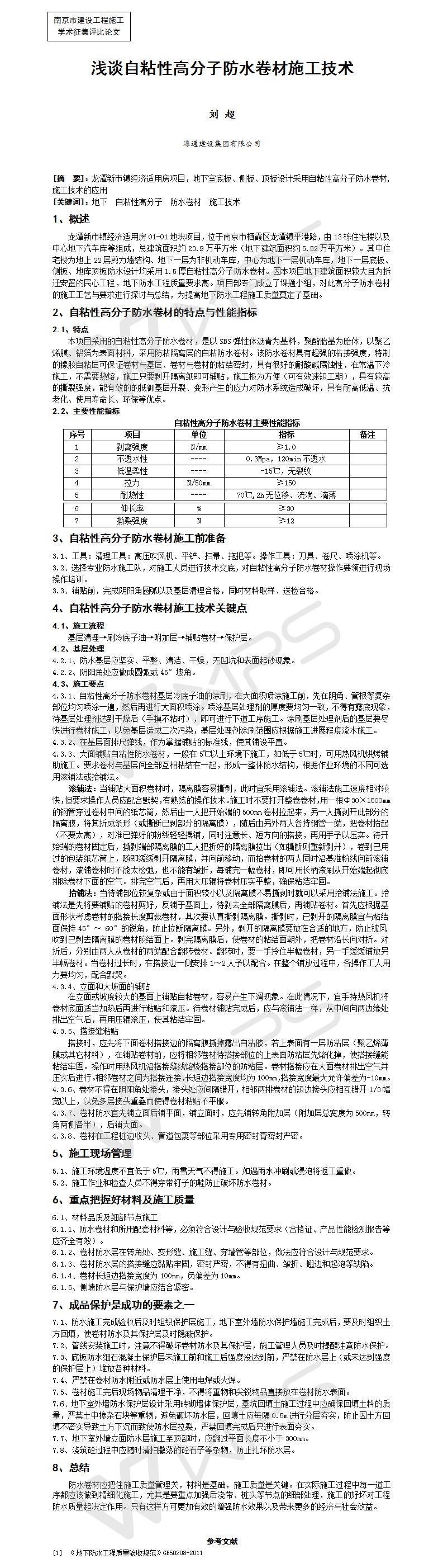 淺談自粘性高分子防水卷材施工技術(shù)