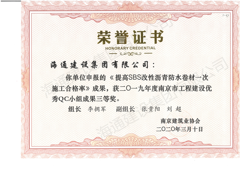 QC2020《提高SBS改性瀝青防水卷材一次施工合格率》