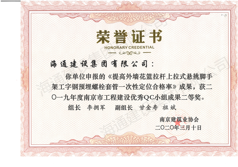 QC2020《提高外墻花籃拉桿上拉式懸挑腳手架工字鋼預埋螺栓套管一次性定位合格率》