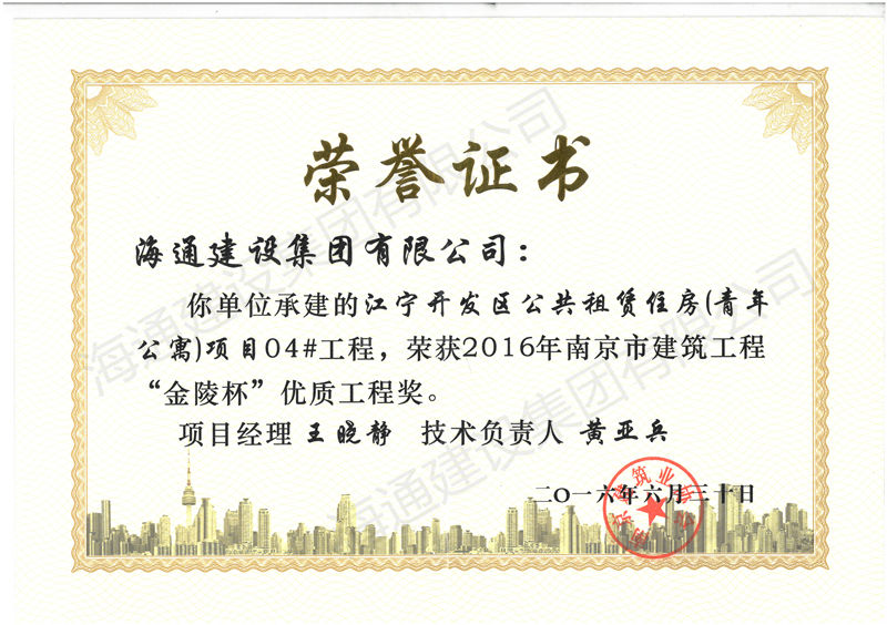 南京市金陵杯2016江寧區開發區公共廉租房項目04#工程