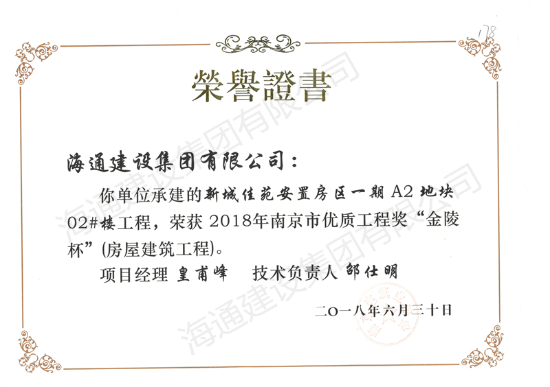 南京市金陵杯2018新城佳苑安置房區一期A2地塊02#樓工程