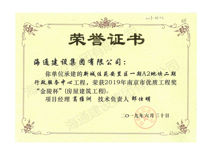 南京市金陵杯2019新城佳苑安置區一期A2地塊行政服務中心工程