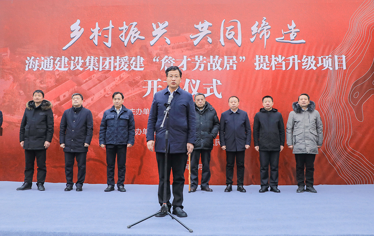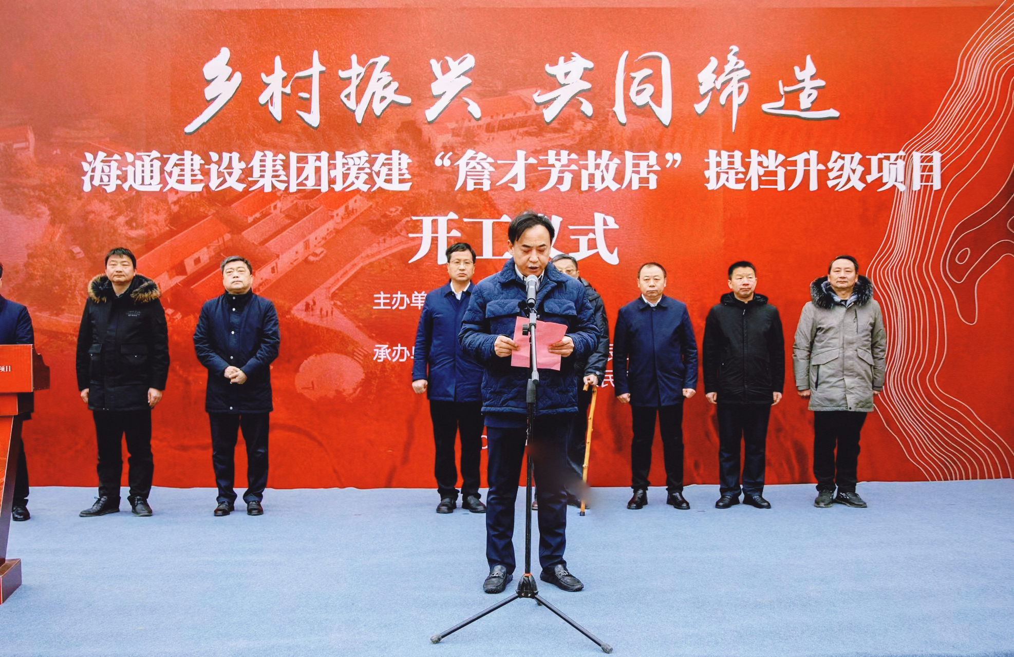 深耕紅安,創新發展。海通集團落戶紅安三年,在住建部政策引領下,精準扶貧書寫老區巨變,從脫貧攻堅邁向鄉村振興。以“紅色引擎、黨建引領”定點捐助,共同締造鄉村振興美好生活。2月2日,海通集團捐建詹才芳故居提檔升級項目開工儀式在高橋鎮程河村隆重舉行,紅安縣委書記劉堂軍、縣委常委、湖北紅安革命紀念地管理中心黨委書記阮璘、湖北紅安革命紀念地管理中心主任劉曉軍、副縣長舒小安、縣政協副主席姚福祥以及詹才芳將軍長子詹威、女兒詹鷹等親屬出席開工儀式,組織部、文旅局等縣直部門主要負責人以及高橋鎮干部和群眾代表參加活動,作為捐建方海通集團董事長任德華就開工項目做重要講話。